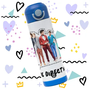 One Direction , Παιδικό παγούρι θερμό, ανοξείδωτο, με καλαμάκι ασφαλείας, ΜΠΛΕ (500ml)