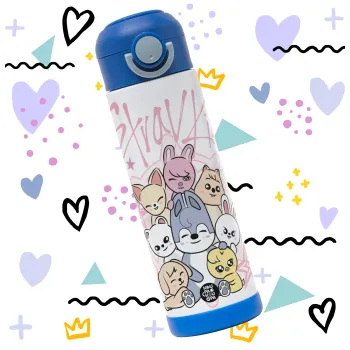 Stray Kids Pink, Παιδικό παγούρι θερμό, ανοξείδωτο, με καλαμάκι ασφαλείας, ΜΠΛΕ (500ml)