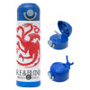 GOT House Targaryen, Fire Blood, Παιδικό παγούρι θερμό, ανοξείδωτο, με καλαμάκι ασφαλείας, ΜΠΛΕ (500ml)