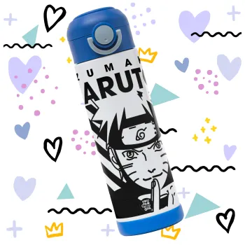 Naruto uzumaki, Παιδικό παγούρι θερμό, ανοξείδωτο, με καλαμάκι ασφαλείας, ΜΠΛΕ (500ml)