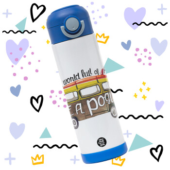 Τέλος τα πλαστικά μπουκάλια! Παρουσιάζουμε το απόλυτο μπουκάλι θερμό για τα παιδιά σας! Κατασκευασμένο από ανοξείδωτο ατσάλι, το μπουκάλι μας χωράει 500ml υγρό και είναι ιδανικό για το σχολείο και τις υπαίθριες δραστηριότητες. Με το απαλό άκρο, οι μικροί μας φίλοι μπορούν να πίνουν κατευθείαν από το μπουκάλι χωρίς καλαμάκι. Το ευρύ άνοιγμα του μας επιτρέπει να το καθαρίσουμε εύκολα για άψογη υγιεινή! Λαβή για εύκολη μεταφορά, καπάκι βιδωτό για ασφάλεια και λαβή για άνετο κράτημα. Επίσης, το μπουκάλι μας είναι BPA FREE, διατηρεί το πόσιμο δροσερό και δροσιστικό έξω από το ψυγείο.