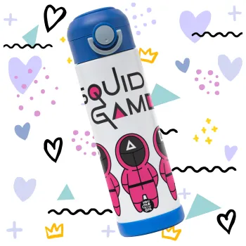 Το παιχνίδι του καλαμαριού, Παιδικό παγούρι θερμό, ανοξείδωτο, με καλαμάκι ασφαλείας, ΜΠΛΕ (500ml)