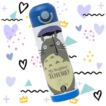 Totoro from My Neighbor Totoro, Παιδικό παγούρι θερμό, ανοξείδωτο, με καλαμάκι ασφαλείας, ΜΠΛΕ (500ml)