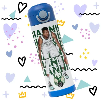 Γιάννης Αντετοκούνμπο, Παιδικό παγούρι θερμό, ανοξείδωτο, με καλαμάκι ασφαλείας, ΜΠΛΕ (500ml)