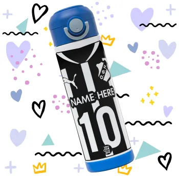 Τέλος τα πλαστικά μπουκάλια! Παρουσιάζουμε το απόλυτο μπουκάλι θερμό για τα παιδιά σας! Κατασκευασμένο από ανοξείδωτο ατσάλι, το μπουκάλι μας χωράει 500ml υγρό και είναι ιδανικό για το σχολείο και τις υπαίθριες δραστηριότητες. Με το απαλό άκρο, οι μικροί μας φίλοι μπορούν να πίνουν κατευθείαν από το μπουκάλι χωρίς καλαμάκι. Το ευρύ άνοιγμα του μας επιτρέπει να το καθαρίσουμε εύκολα για άψογη υγιεινή! Λαβή για εύκολη μεταφορά, καπάκι βιδωτό για ασφάλεια και λαβή για άνετο κράτημα. Επίσης, το μπουκάλι μας είναι BPA FREE, διατηρεί το πόσιμο δροσερό και δροσιστικό έξω από το ψυγείο.