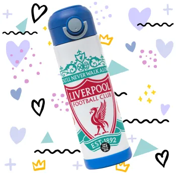 Liverpool, Παιδικό παγούρι θερμό, ανοξείδωτο, με καλαμάκι ασφαλείας, ΜΠΛΕ (500ml)