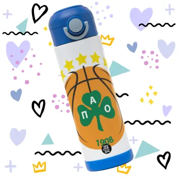 ΠΑΟ BC, Παιδικό παγούρι θερμό, ανοξείδωτο, με καλαμάκι ασφαλείας, ΜΠΛΕ (500ml)