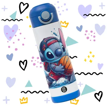 Stitch Basketball, Παιδικό παγούρι θερμό, ανοξείδωτο, με καλαμάκι ασφαλείας, ΜΠΛΕ (500ml)