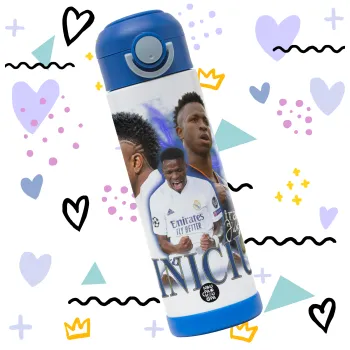 Vinicius Junior, Παιδικό παγούρι θερμό, ανοξείδωτο, με καλαμάκι ασφαλείας, ΜΠΛΕ (500ml)