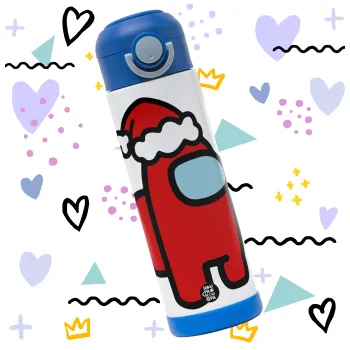 Among US Santa, Παιδικό παγούρι θερμό, ανοξείδωτο, με καλαμάκι ασφαλείας, ΜΠΛΕ (500ml)