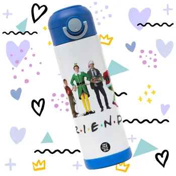Christmas FRIENDS, Παιδικό παγούρι θερμό, ανοξείδωτο, με καλαμάκι ασφαλείας, ΜΠΛΕ (500ml)