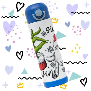 Christmas Meme SIX SEVEN (67), Παιδικό παγούρι θερμό, ανοξείδωτο, με καλαμάκι ασφαλείας, ΜΠΛΕ (500ml)