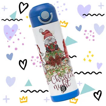 Oh Christmas Night, Παιδικό παγούρι θερμό, ανοξείδωτο, με καλαμάκι ασφαλείας, ΜΠΛΕ (500ml)
