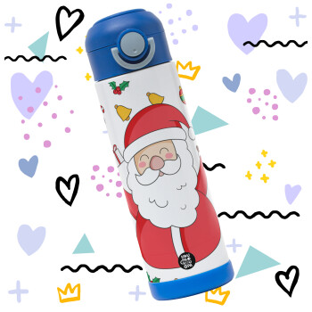 Santa Claus gifts, Παιδικό παγούρι θερμό, ανοξείδωτο, με καλαμάκι ασφαλείας, ΜΠΛΕ (500ml)