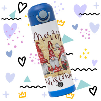 Xmas Elves, Παιδικό παγούρι θερμό, ανοξείδωτο, με καλαμάκι ασφαλείας, ΜΠΛΕ (500ml)