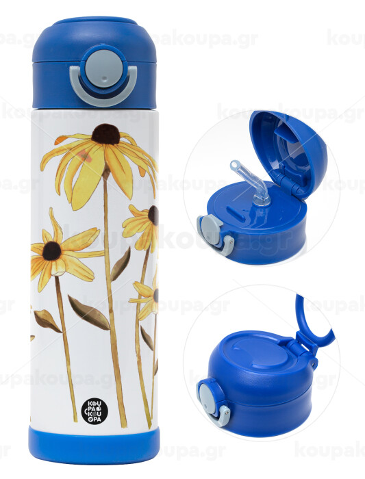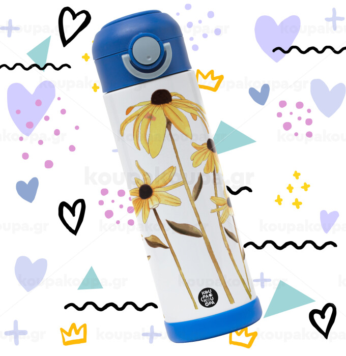Daisies flower, Παιδικό παγούρι θερμό, ανοξείδωτο, με καλαμάκι ασφαλείας, ΜΠΛΕ (500ml)