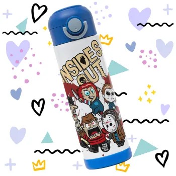 Halloween Inside out, Παιδικό παγούρι θερμό, ανοξείδωτο, με καλαμάκι ασφαλείας, ΜΠΛΕ (500ml)