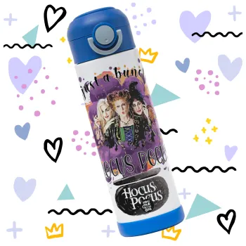 Hocus Pocus, Παιδικό παγούρι θερμό, ανοξείδωτο, με καλαμάκι ασφαλείας, ΜΠΛΕ (500ml)