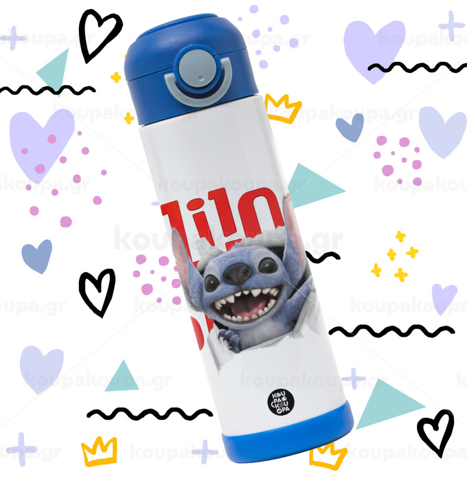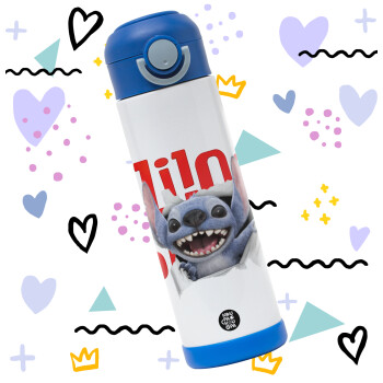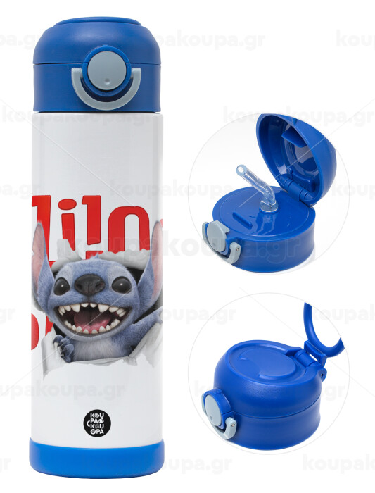 Stitch movie, Παιδικό παγούρι θερμό, ανοξείδωτο, με καλαμάκι ασφαλείας, ΜΠΛΕ (500ml)