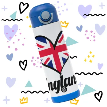England flag, Παιδικό παγούρι θερμό, ανοξείδωτο, με καλαμάκι ασφαλείας, ΜΠΛΕ (500ml)