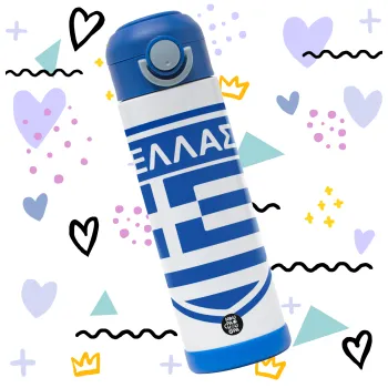 Ελλάς, Παιδικό παγούρι θερμό, ανοξείδωτο, με καλαμάκι ασφαλείας, ΜΠΛΕ (500ml)