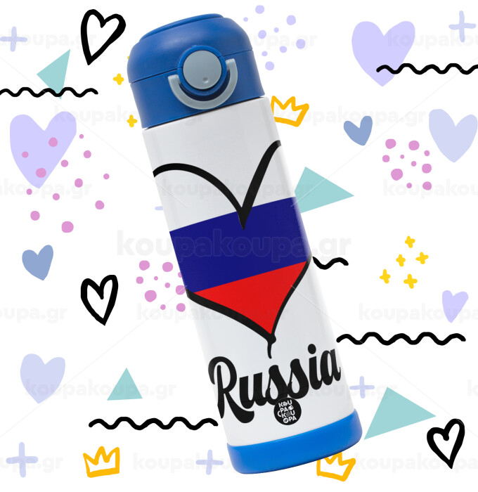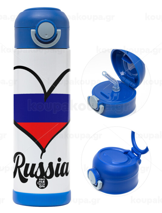 Russia flag, Παιδικό παγούρι θερμό, ανοξείδωτο, με καλαμάκι ασφαλείας, ΜΠΛΕ (500ml)