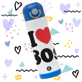 I Love 80s, Παιδικό παγούρι θερμό, ανοξείδωτο, με καλαμάκι ασφαλείας, ΜΠΛΕ (500ml)