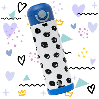 Doodle Dots, Παιδικό παγούρι θερμό, ανοξείδωτο, με καλαμάκι ασφαλείας, ΜΠΛΕ (500ml)