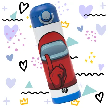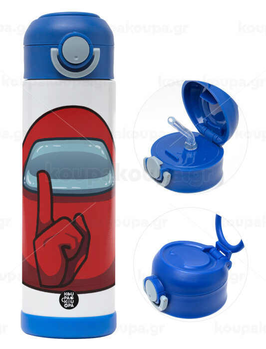 Among US, Παιδικό παγούρι θερμό, ανοξείδωτο, με καλαμάκι ασφαλείας, ΜΠΛΕ (500ml)