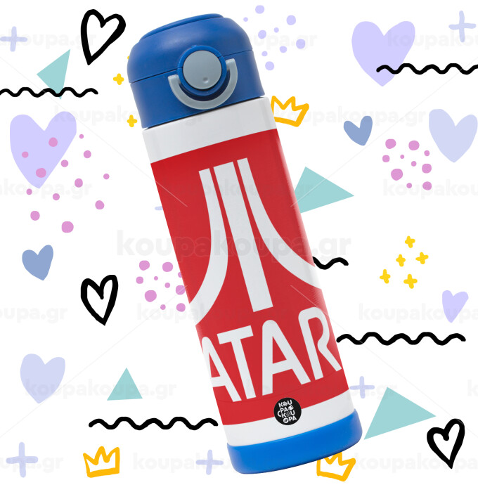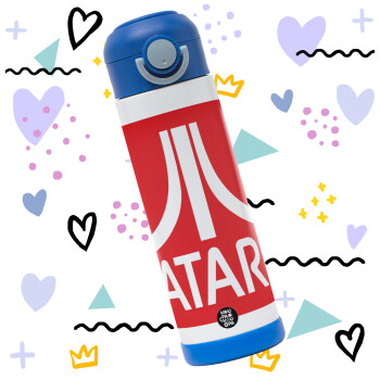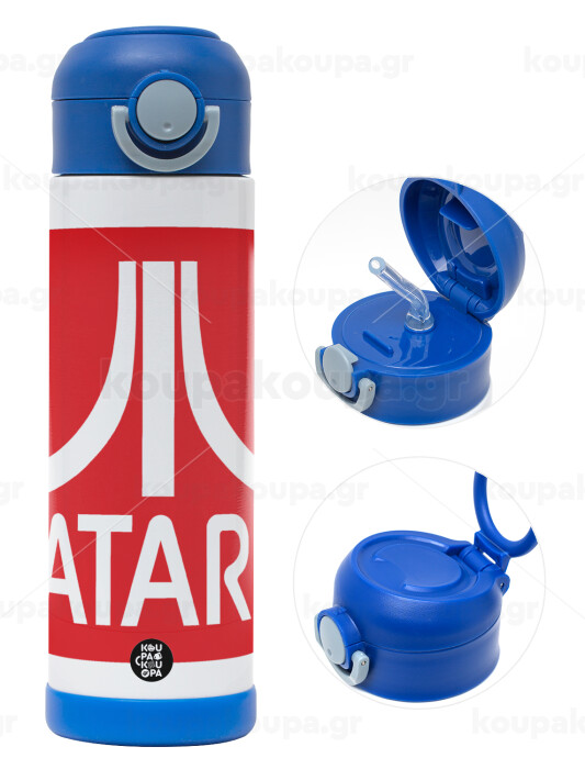 atari, Παιδικό παγούρι θερμό, ανοξείδωτο, με καλαμάκι ασφαλείας, ΜΠΛΕ (500ml)