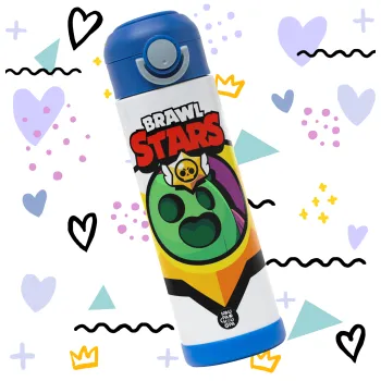Brawl Stars Spike, Παιδικό παγούρι θερμό, ανοξείδωτο, με καλαμάκι ασφαλείας, ΜΠΛΕ (500ml)