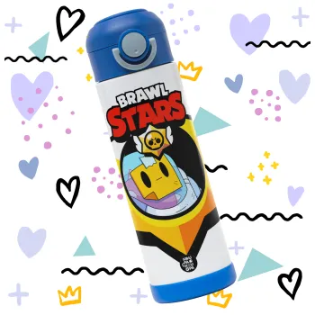 Brawl Stars Sprout, Παιδικό παγούρι θερμό, ανοξείδωτο, με καλαμάκι ασφαλείας, ΜΠΛΕ (500ml)