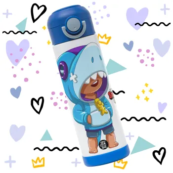 Brawl Stars Leon Shark, Παιδικό παγούρι θερμό, ανοξείδωτο, με καλαμάκι ασφαλείας, ΜΠΛΕ (500ml)