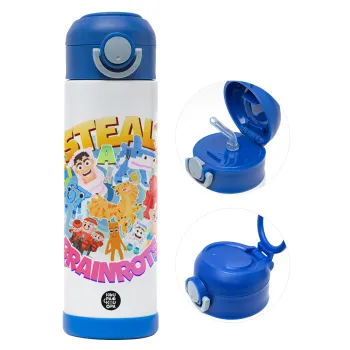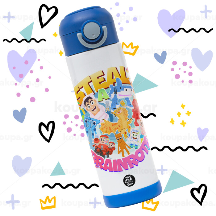 Roblox Steal a Brainrot, Παιδικό παγούρι θερμό, ανοξείδωτο, με καλαμάκι ασφαλείας, ΜΠΛΕ (500ml)