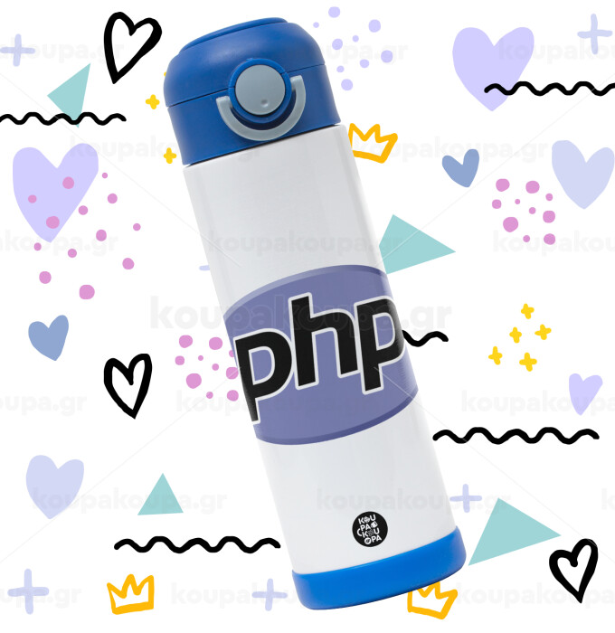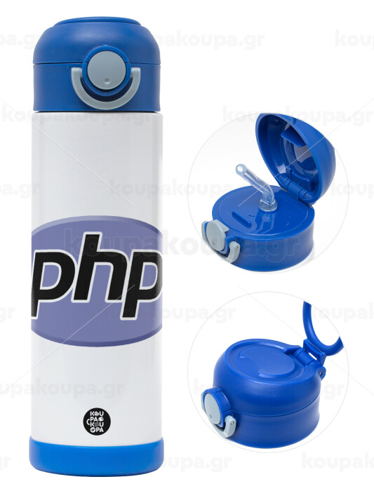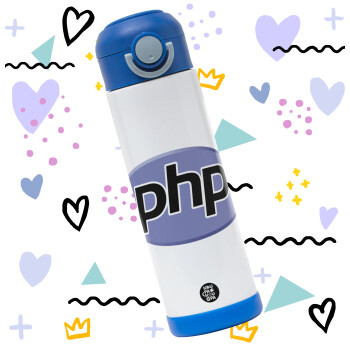 PHP, Παιδικό παγούρι θερμό, ανοξείδωτο, με καλαμάκι ασφαλείας, ΜΠΛΕ (500ml)