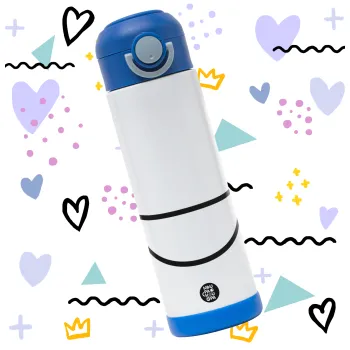 Χαμογέλα, Παιδικό παγούρι θερμό, ανοξείδωτο, με καλαμάκι ασφαλείας, ΜΠΛΕ (500ml)