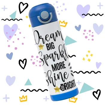 Dream big, Sparkle more, Shine bright, Παιδικό παγούρι θερμό, ανοξείδωτο, με καλαμάκι ασφαλείας, ΜΠΛΕ (500ml)