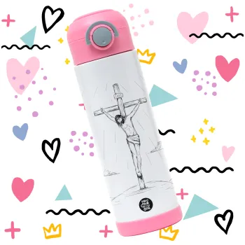 Jesus Christ , Παιδικό παγούρι θερμό, ανοξείδωτο, με καλαμάκι ασφαλείας, ΡΟΖ (500ml)