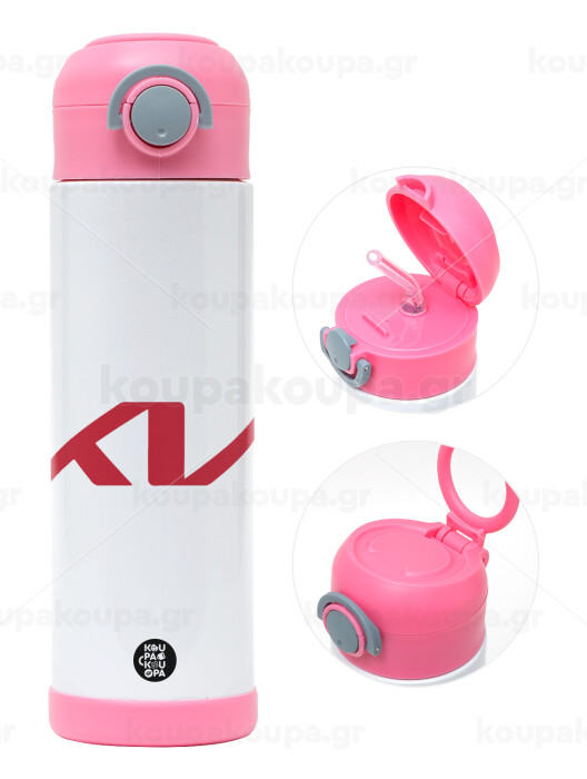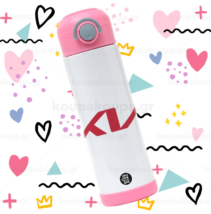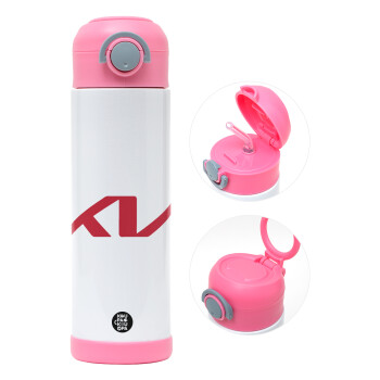 KIA, Παιδικό παγούρι θερμό, ανοξείδωτο, με καλαμάκι ασφαλείας, ΡΟΖ (500ml)