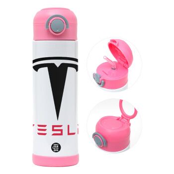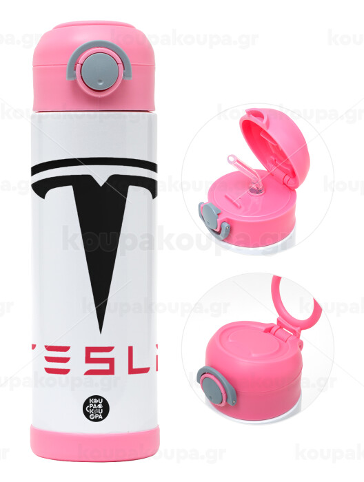 Tesla motors, Παιδικό παγούρι θερμό, ανοξείδωτο, με καλαμάκι ασφαλείας, ΡΟΖ (500ml)