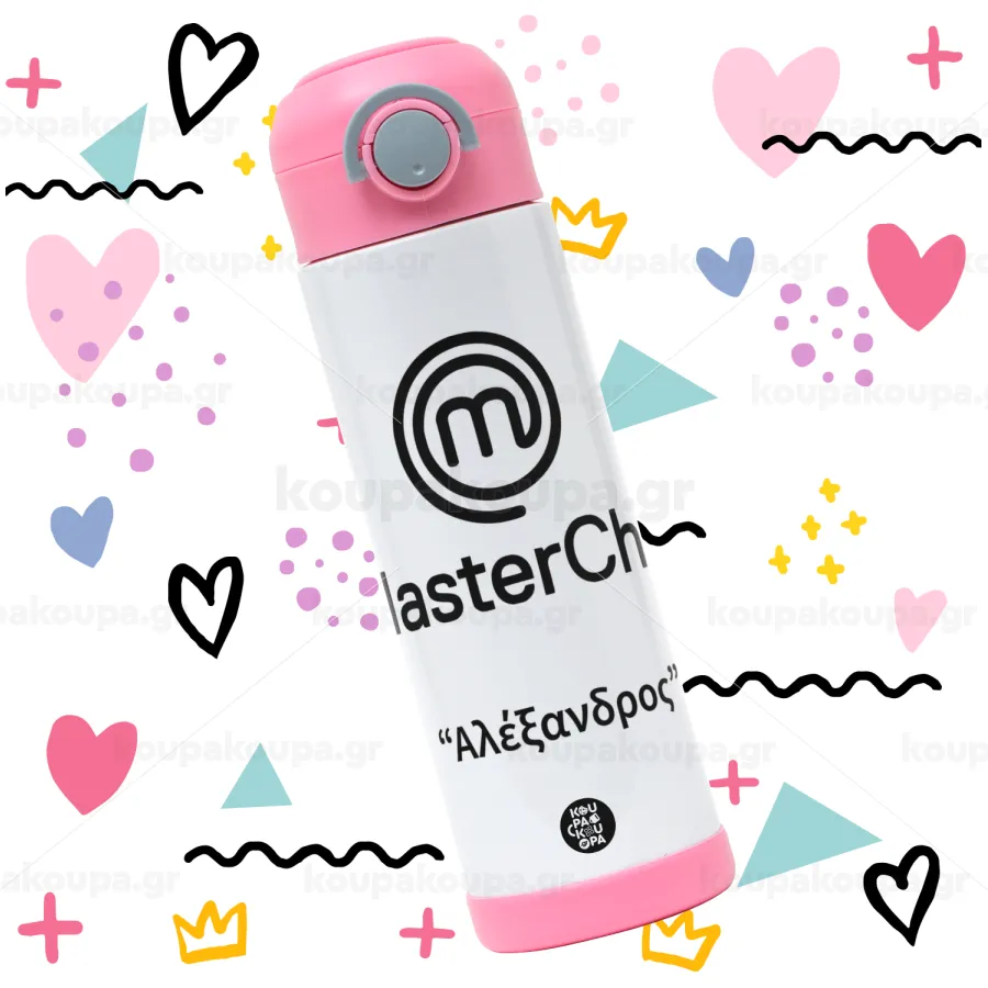Master Chef, Παιδικό παγούρι θερμό, ανοξείδωτο, με καλαμάκι ασφαλείας, ΡΟΖ (500ml)