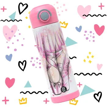 Ballerina shoes, Παιδικό παγούρι θερμό, ανοξείδωτο, με καλαμάκι ασφαλείας, ΡΟΖ (500ml)