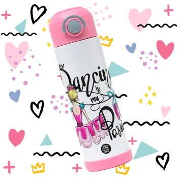 Dancing is my Passion, Παιδικό παγούρι θερμό, ανοξείδωτο, με καλαμάκι ασφαλείας, ΡΟΖ (500ml)