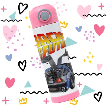 Back to the future, Παιδικό παγούρι θερμό, ανοξείδωτο, με καλαμάκι ασφαλείας, ΡΟΖ (500ml)