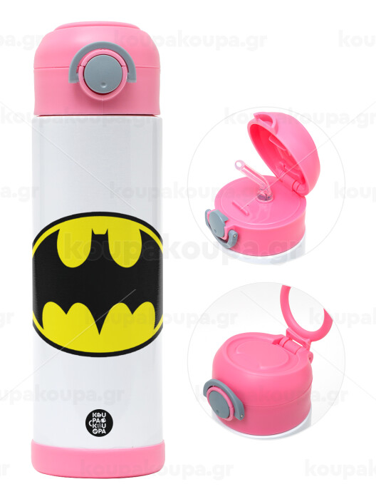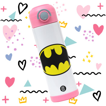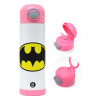 Batman, Παιδικό παγούρι θερμό, ανοξείδωτο, με καλαμάκι ασφαλείας, ΡΟΖ (500ml)