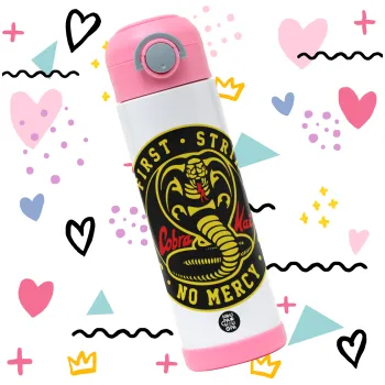 cobra kai strike first dojo, Παιδικό παγούρι θερμό, ανοξείδωτο, με καλαμάκι ασφαλείας, ΡΟΖ (500ml)