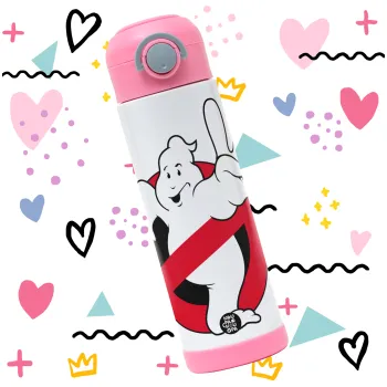 Ghostbusters, Παιδικό παγούρι θερμό, ανοξείδωτο, με καλαμάκι ασφαλείας, ΡΟΖ (500ml)