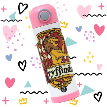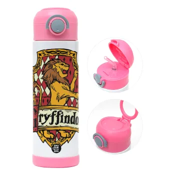 Gryffindor, Harry potter, Παιδικό παγούρι θερμό, ανοξείδωτο, με καλαμάκι ασφαλείας, ΡΟΖ (500ml)