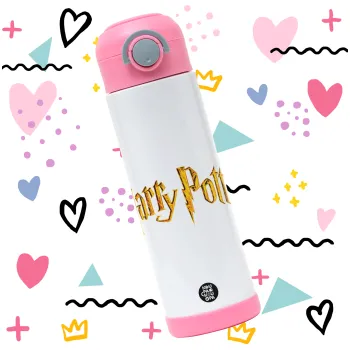 Harry potter movie, Παιδικό παγούρι θερμό, ανοξείδωτο, με καλαμάκι ασφαλείας, ΡΟΖ (500ml)