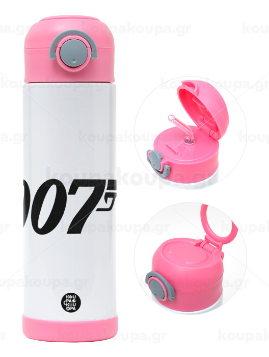 James Bond 007, Παιδικό παγούρι θερμό, ανοξείδωτο, με καλαμάκι ασφαλείας, ΡΟΖ (500ml)